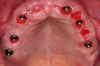 Patient très stressé ayant consulté plusieurs cabinets pour une prise en charge globale, esthétique et fonctionnelle. Ses deux souhaits : ne pas avoir mal et être relaxé pendant l’intervention chirurgicale (réalisée sous neuroleptanalgésie) en repartant avec des dents fixes. Une étude fonctionnelle et esthétique a été réalisée avec un bridge complet sur implants maxillaire et la réalisation de facettes et couronnes céramique à la mandibule.