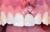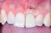Patient ayant consulté pour une fracture de son incisive centrale maxillaire gauche. Une étape opératoire : extraction de la racine, reconstruction osseuse et muqueuse implant et provisoire sur implant, le jour de la chirurgie et à 3 mois avant de la réadresser à son dentiste traitant pour la dent en céramique.
